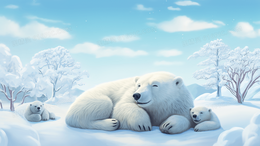 趴在冰雪上休息的北极熊母子插画