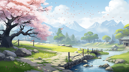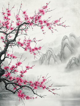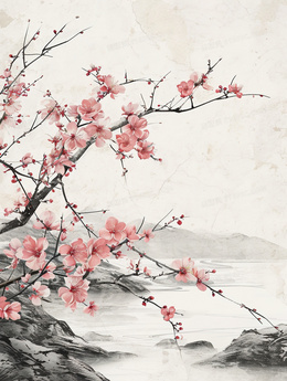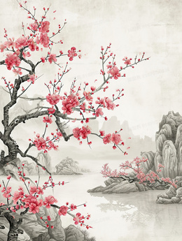 当前位置: 图精灵 > 背景图库 > 插画 > 小河旁的粉梅树水墨插画