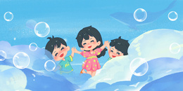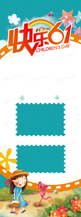 蓝色手绘梦幻小朋友欢度六一儿童节合成背景