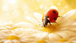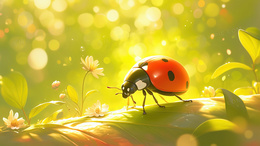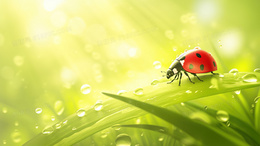 膨胀风简约惊蛰绿色花朵七星瓢虫背景