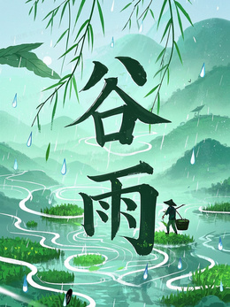 立体谷雨字体设计谷字撇捺化作梯田曲线