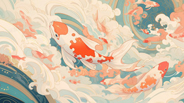 > 中国风水中锦鲤吉祥插画