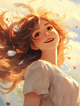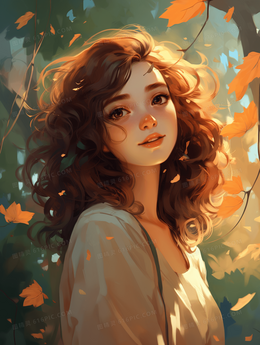 阳光下的可爱少女插画