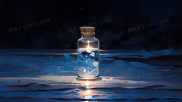 被碧蓝的海水冲刷到沙滩上的漂流瓶里装着星星
