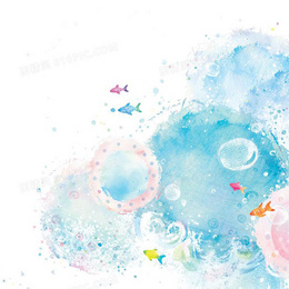 蓝色海洋气泡小鱼手绘背景