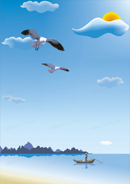 卡通清新蓝色海洋海报背景