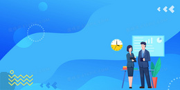 蓝色扁平风工作交流合成背景