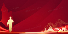 八一建军节军人剪影红色丝绸红金党政党建背景