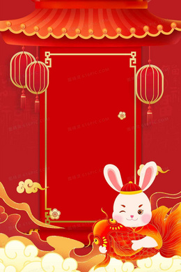 红色喜庆锦鲤兔年背景