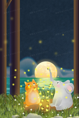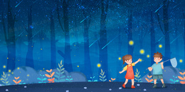 夏季萤火虫仲夏夜卡通可爱背景