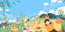 手绘卡通野餐合成插画人物背景