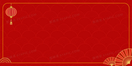 红色简约中式灯笼扇子主题背景