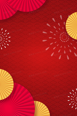红色简约中式扇子边框背景