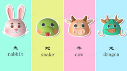 卡通十二生肖之兔蛇牛龙头像插画