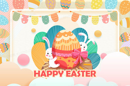 > 复活节彩蛋兔子节日插画