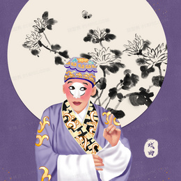 手绘传统戏曲人物丑角插画