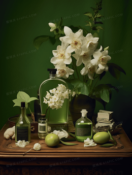 当前位置: 图精灵 > 背景图库 > 插画 > 绿色生机活力的香水瓶场景
