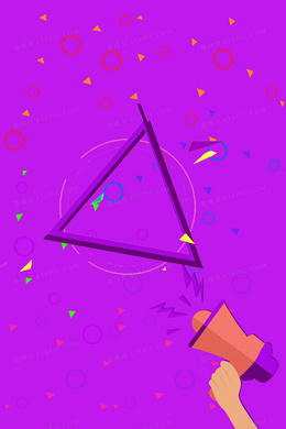 紫色卡通几何图形喇叭合成背景