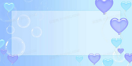 小清新的蓝色爱心气球情人节创意边框气泡背景