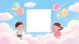 手绘蜡笔质感背景图戴动物耳套的男孩在画面右下方吹泡泡