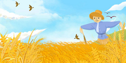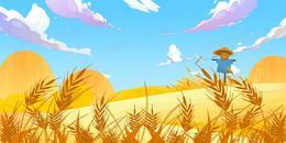 清新插画风丰收稻香背景