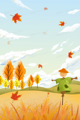 卡通丰收的季节稻草人水稻背景