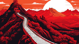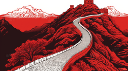 红色北京长城中国古典恢弘建筑风景插画