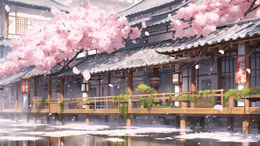 春天樱花盛开的江南水乡插画