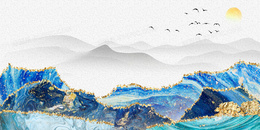 蓝色轻奢鎏金山水背景