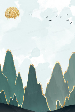 简约轻奢鎏金山水背景