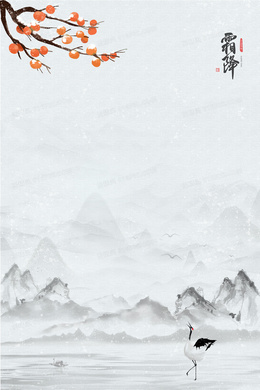 灰色中国风山水霜降背景