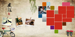 怀旧照片墙时光友谊自行车做旧心形海报背景