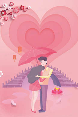 七夕节爱心插画海报