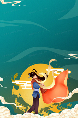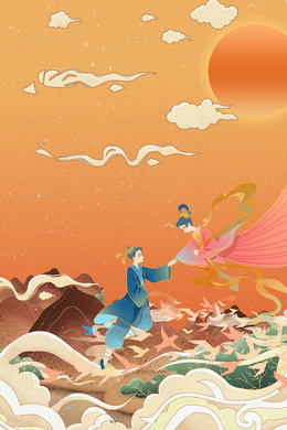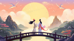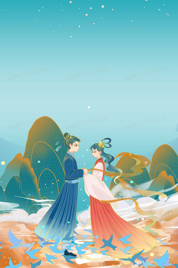 手绘国潮七夕牛郎织女鹊桥相会背景