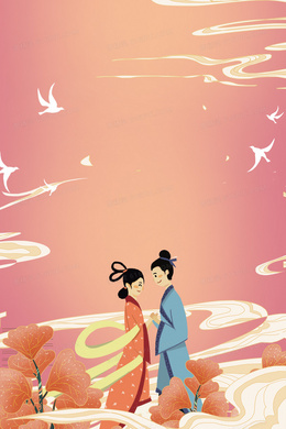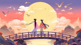 > 彩色七夕节鹊桥相会传统古典插画
