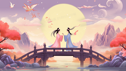 创意国潮风七夕牛郎织女鹊桥相会背景