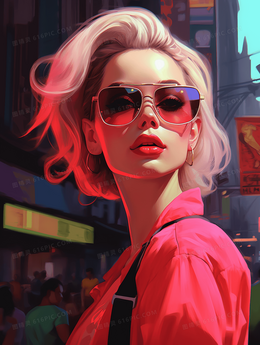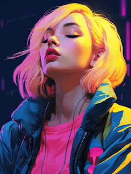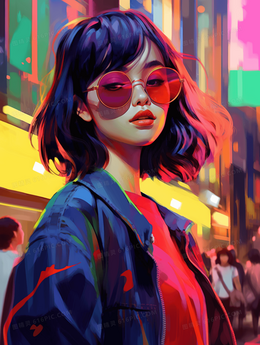 彩色青春时尚唯美女孩人物插画