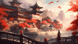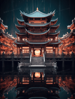 当前位置: 图精灵 > 背景图库 > 插画 > 湖中央的中国风古建筑风景摄影