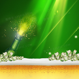 啤酒节绿色炫酷光束冰块背景