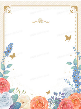 > 唯美手绘花朵与蝴蝶女神节海报背景