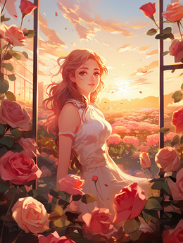 浪漫粉色少女玫瑰花海情人节妇女节插画