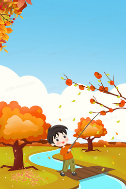 秋分男孩摘果子海报背景图