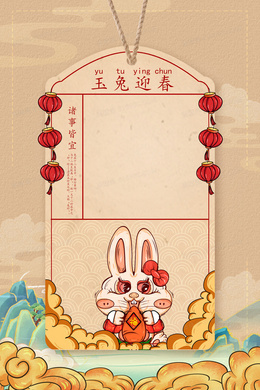玉兔迎春新年签中国风国潮背景