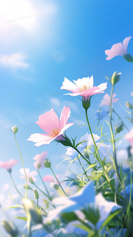 阳光下唯美清新的野花特写创意插画