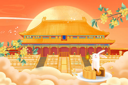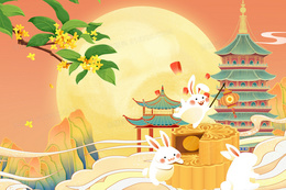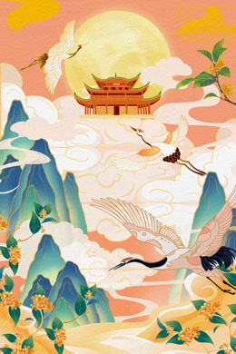 中秋国庆双节喜庆嫦娥仙子国潮创意插画