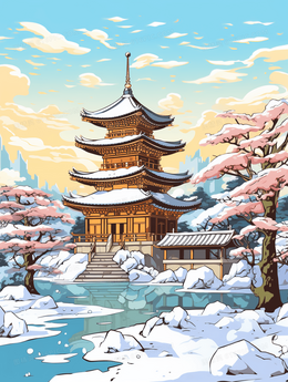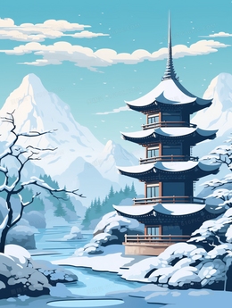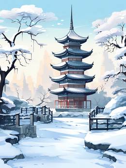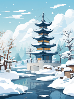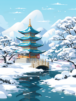 当前位置: 图精灵 > 背景图库 > 插画 > 唯美中国风亭台楼阁大雪节气风景图片