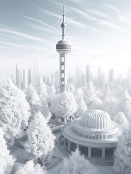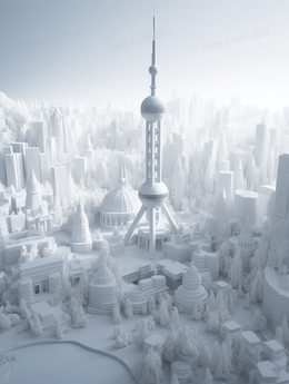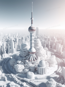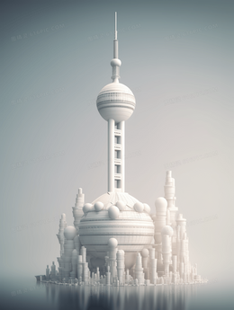 白色3D立体东方之珠建筑插画