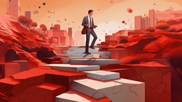 行走在立体台阶上的男人创意插画