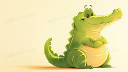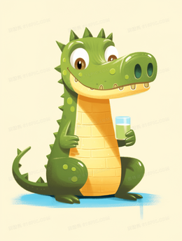 绿色卡通可爱小鳄鱼喝果汁插画