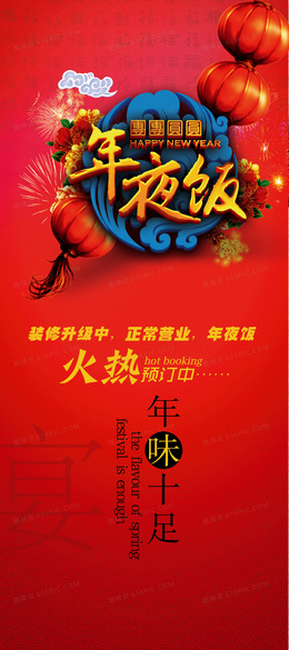 红色喜庆除夕夜年夜饭预定海报背景素材